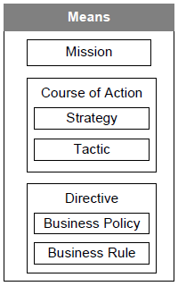 - Ends and means - what an enterprise wants to be, as opposed to what it has decided to do.