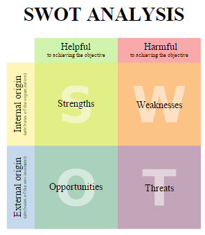 - SWOT - Strength, Weakness, Opportunity, Threat - is a frequently-used set of categories for Assessment