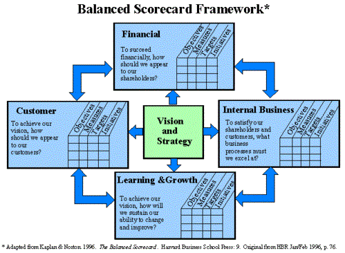 - Measures organization performance across four balanced perspectives: financial, customers, internal business process and learning and growth