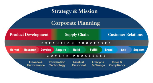 The structure of the VRM (Value Reference Model) supports and enables corporations to integrate their three critical domains;