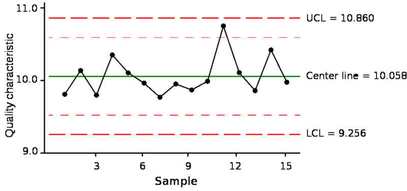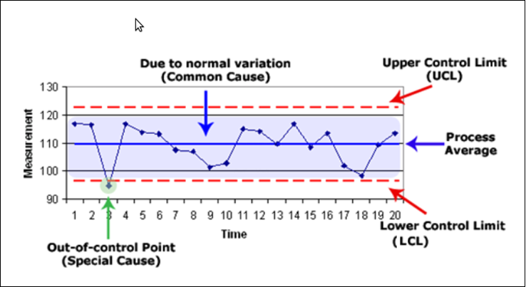 - Six Sigma often uses a top control chart to determine whether a manufacturing or business process is in a state of statistical control or not