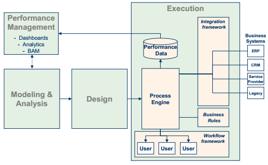 - BPMS exploits an explicit description of a business process, in the form of a process model, to coordinate that process.
