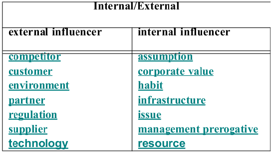 - Two broad Influencer Categories: External and Internal