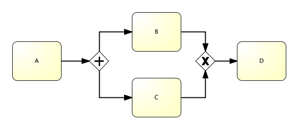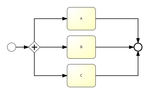 - A Parallel Gateway creates parallel paths without checking any conditions; each outgoing Sequence Flow receives a token upon execution of this Gateway